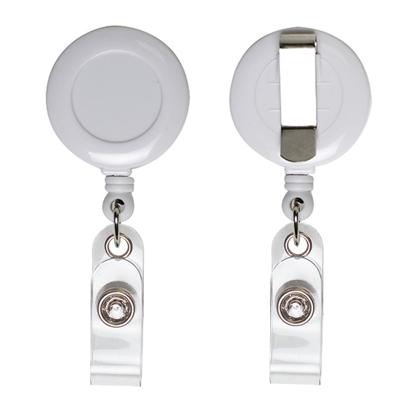 Круглый ретрактор для бейджей и пропусков с нитью из металла, белый | Ret-122M
