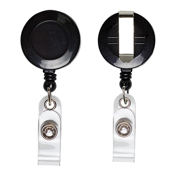 Круглый ретрактор для бейджей и пропусков с нитью из металла, черный | Ret-122M