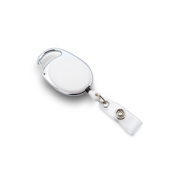 Овальный ретрактор для бейджей и пропусков Премиум, белый | Ret-104