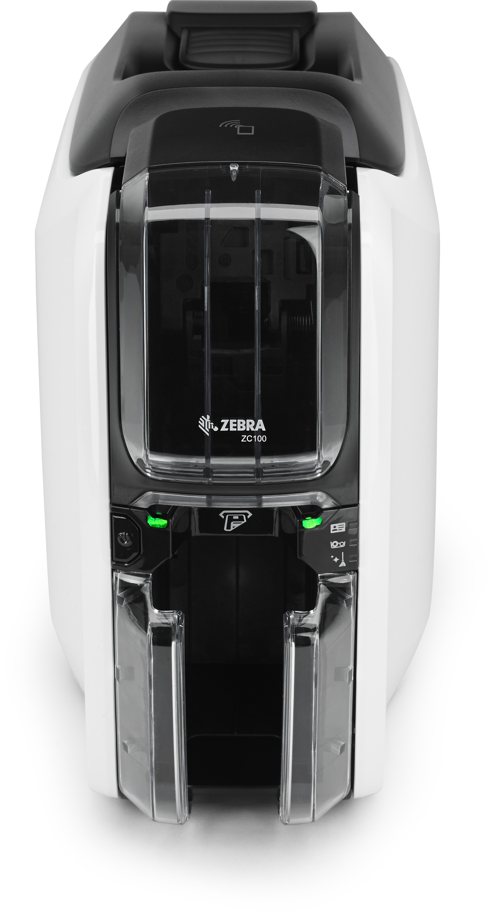Принтер имеет емкость входного и выходного лоток по 100 карт. Готовые карты можно извлекать по одной или стопкой, не открывая предварительно устройство. Таким образом, пользователи могут использовать карты сразу после печати. Кроме того, компактная конструкция и элегантный дизайн ZC100 делают его презентабельным практически везде – в идеале там, где у пользователей есть наилучший доступ к только что напечатанным картам. Принтер взаимодействует с компьютером через USB 2.0, но также опционально доступно с модулем WLAN 802.11 ac и портом Ethernet.